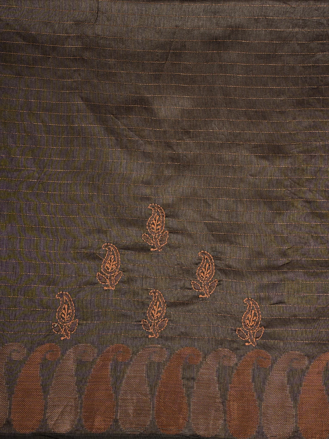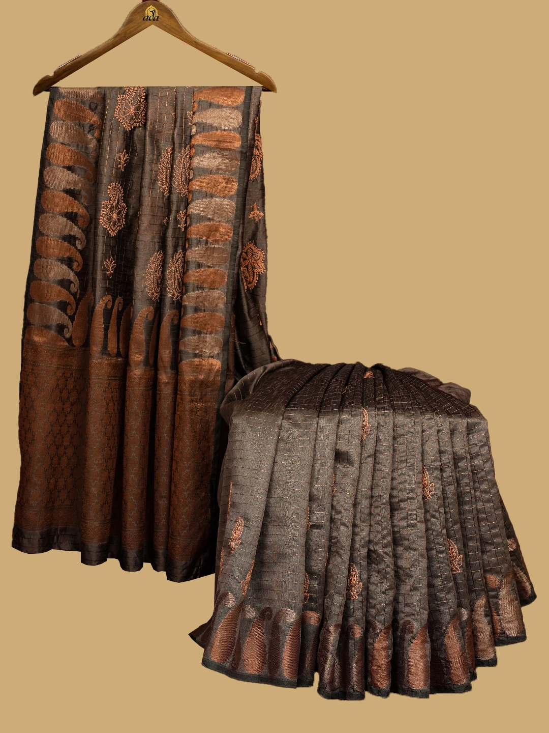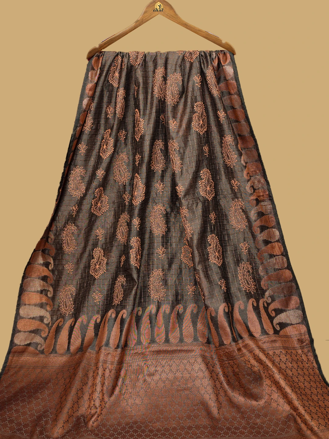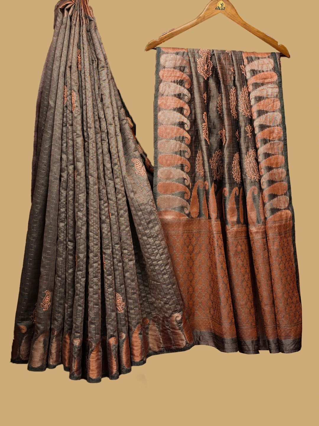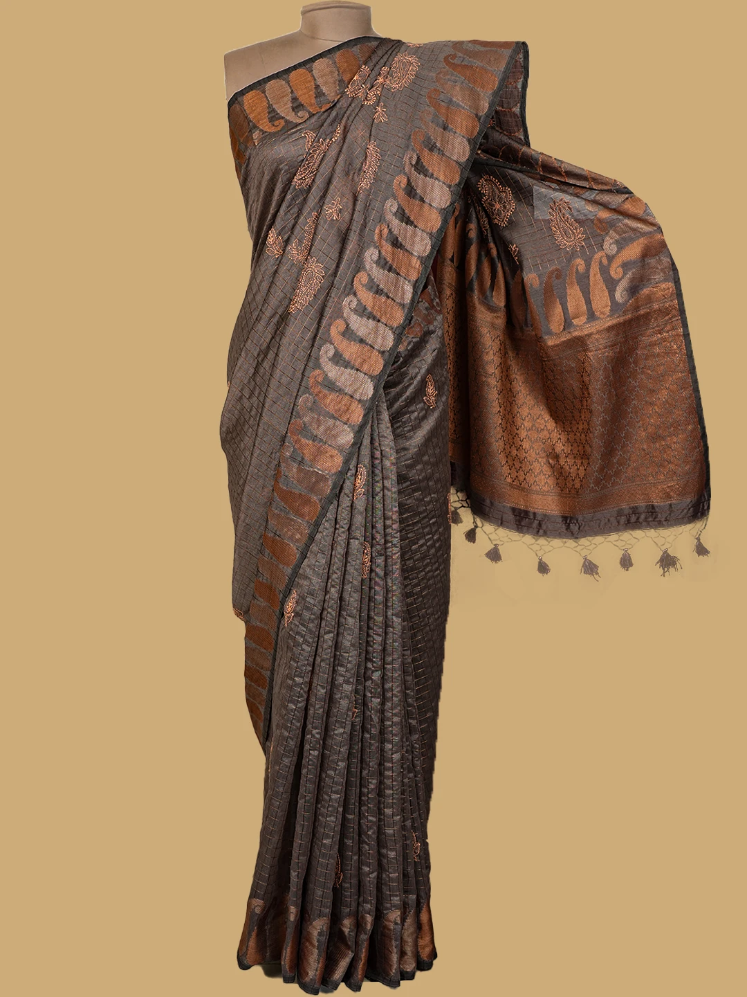 Silhouette: This Dusty Grey Chanderi Lucknowi Chikankari Saree, is meticulously crafted to perfection. The delicate hand-embroidered Chikankari work adorning the saree exudes finesse and grace, adding a touch of traditional charm to your ensemble. Crafted with care and precision, the soft and breathable chanderi fabric ensures comfort throughout the day, making it ideal for any occasion, whether a festive celebration or a formal event. The soothing peach hue complements a wide range of skin tones, radiating a subtle yet captivating allure.